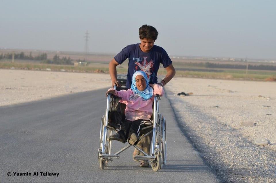 Un giovane del campo profughi di Al Zaatari, in Giordania porta sua sorella a fare un giro. Bastano i loro sorrisi, l’amore che trasmettono, a commentare questa foto.