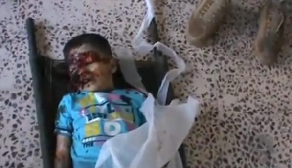 Nelle immagini il piccolo Hasan Husam AlKamel, ucciso da una cannonata dell’esercito criminale di assad.