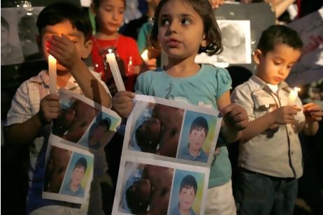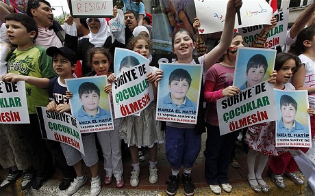 “Hamza Alì Al Khateebb nasce a Jeezah, nei pressi di Dar’à, la città simbolo della Rivolta della dignità siriana contro il regime di Bashar Assad, il 6 maggio 1998, il giorno in cui la Siria celebra la Giornata dei martiri. Il suo viso solare e luminoso e il suo sorriso spensierato sono diventati il simbolo dell’innocenza del popolo siriano, violata dalla ferocia della dittatura. Il 29 aprile 2011 Hamza è stato arrestato e il suo corpo è tornato alla famiglia il 25 maggio 2011, già in decomposizione, con segni di tortura indicibili, bruciature, con evidenti segni di violenza sessuale e con i genitali tagliati. Persino la madre ha stentato a riconoscerlo… Quando è stato arrestato il piccolo Hamza si trovava, con altre centinaia di persone, nei pressi di Seda, una località dove il regime ha commesso una strage contro manifestanti inermi, procedendo poi con una campagna di arresti immotivati, che appunto hanno preso di mira anche bambini. La brutalità della sua uccisione, ha infiammato le proteste in tutta la Siria e ha smosso le coscienze di migliaia di siriani anche all’estero. Intervistato il 7 dicembre 2011 dalla giornalista Barbara Walters dell’emittente internazionale ABC sulla situazione in Siria e su questa drammatica vicenda, il dittatore assad ha minimizzato i massacri, dicendo che si trattava dell’uccisione di elementi appartenenti a bande armate e ha annunciato una commissione di inchiesta per far luce sull’accaduto, commissione che, naturalmente, non è mai stata istituita, perché il regime sapeva bene cosa aveva fatto e perché. L’uccisione di Hamza serviva per ammonire i siriani su cosa sarebbe accaduto ai loro figli se non avessero rinunciato alla rivolta, ma la realtà è che la storia di Hamza al Khaeeib, che non ha potuto spegnere la sua quattordicesima candelina, ha infiammato gli animi di milioni di persone”.