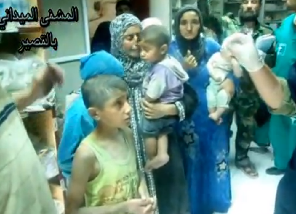 Ospedale di Qusair; parla il dottor Qasem Azzain: “Queste famiglie, questi bambini, queste donne, sono sopravvissuti miracolosamente al bombardamento delle loro case. I bambini sono terrorizzati. Sarebbero questi i terroristi, i militari stranieri che combatte il regime? Questi bambini meritano l’intervento degli aerei militari?”