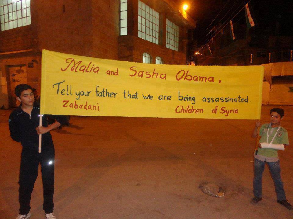 La foto del giorno: messaggio alle figlie di Obama 16Mag 2013 “Malia e Sasha Obama, dite a vostro padre che noi veniamo assassinati” – I bambini siriani di Zabadani. Condividi: Condividi su Facebook (Si apre in una nuova finestra) Facebook Condividi su X (Si apre in una nuova finestra) X Invia un link a un amico via e-mail (Si apre in una nuova finestra) E-mail Stampa (Si apre in una nuova finestra) Stampa Condividi su LinkedIn (Si apre in una nuova finestra) LinkedIn Condividi su WhatsApp (Si apre in una nuova finestra) WhatsApp Mi piace Caricamento...