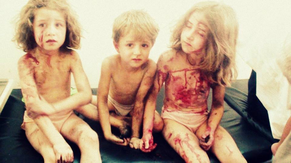 La foto è stata scattata all’ospedale da campo di Tabaqa. I piccoli sono feriti, coperti di sangue e polvere. Vengono soccorsi da medici volontari che hanno solo mezzi precari, non hanno strumenti, ma solo buona volontà e uno spirito generoso.