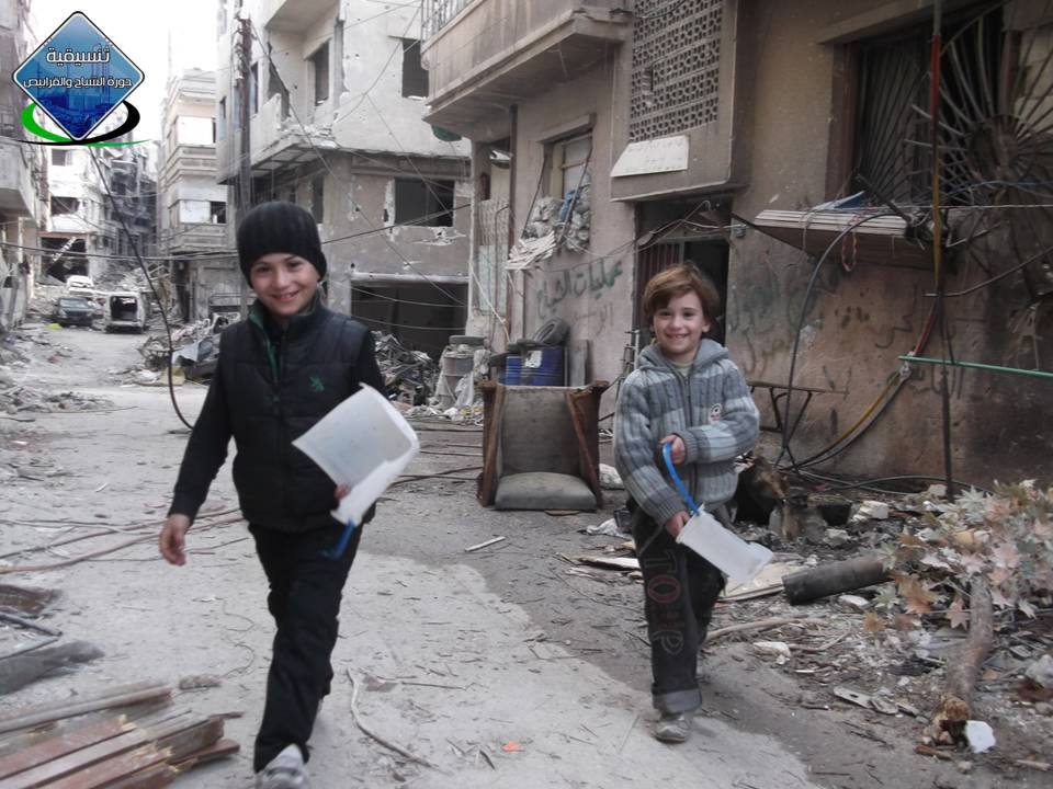 Si chiama “Yasnaun al basma” “Creatori di sorrisi”. E’ una nuova campagna di sensibilizzazione avviata a Homs, nei quartieri assediati, dai giovani utenti della rete che raccontano con i propri scatti la “vita” in Siria. Tra le foto delle macerie, dei bombardamenti, dei feretri, pubblicano anche foto di bambini nella loro quotidianità: mentre camminano tra le macerie, mentre raccolgono legna per scaldarsi, , mentre giocano a rincorrersi per sconfiggere il freddo, mentre lavorano.