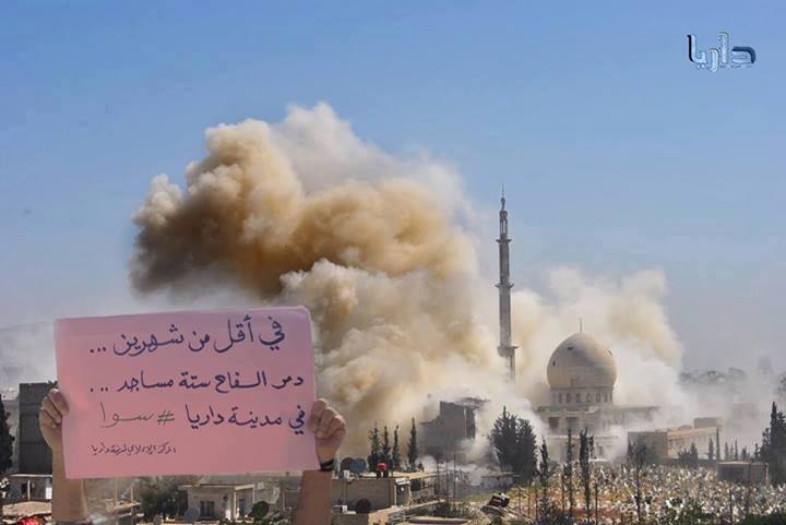“assad sta scrivendo la sua campagna elettorale a suon di bombe. Il suo motto è ‘Sawa’ – insieme – intende che distruggeranno la Siria insieme, lui e i suoi alleati. Abbiamo perso la conta delle bombe che cadono ogni giorno. Sono tutti barili micidiali. Ma quanti ne ha ancora? Non finisce più la sua riserva di esplosivi? Ormai nessuno qui riesce a dormire, né a fare nulla. Il frastuono e la polvere ci stanno tormentando. La città non fa altro che tremare. Centinaia di case sono state colpite, distrutte, così come accade alle moschee e a quel che resta degli ospedali. Daraya è ancora abitata, non riusciamo più a contare i morti e i mutilati. Anche volendo, la gente non saprebbe più dove andare. Perché nessuno si mobilita contro i barili? Sono così diversi dalle armi chimiche? Quante sono le mani implicate nella vendita di queste armi? Quando il mondo vorrà aprire gli occhi e guardare verso Daraya, verso la Siria? ”
