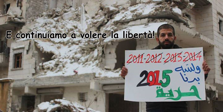 Cosa è rimasto di quel movimento dal basso fatto di giovani, donne e uomini, che hanno creduto veramente di rovesciare il tiranno con la sola forza delle loro voci, dei loro balli, dei loro disegni e delle proprie foto e video camere? Molte delle anime della rivoluzione siriana non ci sono più: uccise senza pietà, recluse nelle carceri del regime, dove si pratica la tortura, fuggite. Chi è rimasto in vita ha spesso dovuto fare i conti con i nuovi nemici della Siria, quei mercenari che stanno conducendo una guerra per procura nelle città siriane, contribuendo a distruggere il patrimonio umano e culturale di questa terra millenaria. Ma la fiamma della libertà arde ancora e gli attivisti siriani ripetono oggi quella stessa parola che nel marzo 2011 ha riempito le piazze siriane: horrye, libertà. Se allora si chiedeva libertà solo dal regime della dinastia degli Assad, oggi si chiede libertà contro il regime e contro Isis. Perché la Siria è dei siriani, di tutti i siriani, di tutte le etnie e religioni.