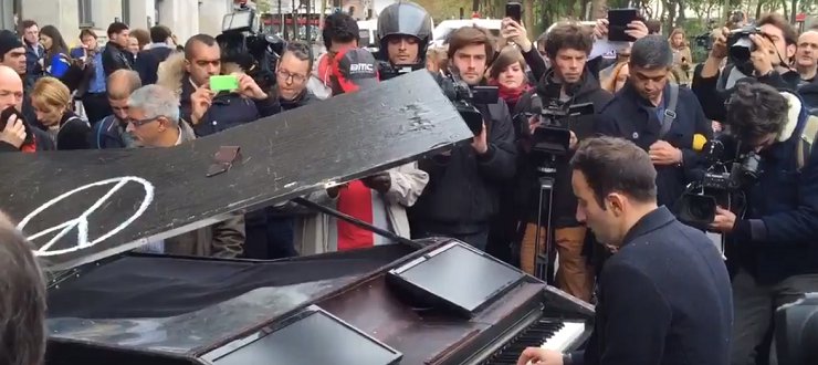 Le immagini del pianista di Parigi ricordano altre immagini di un pianista in un luogo devastato, martoriato, ferito al cuore dal terrorismo: le immagini del Pianista di Yarmouk che abbiamo conosciuto nel febbraio 2014. Si trattava di un giovane rifugiato palestinese nel campo profughi alla periferia di Damasco, sconvolto da oltre tre anni di assedio e colpito al cuore dai bombardamenti del regime prima e dal terrorismo poi. Anche quel giovane aveva suonato uno strumento sgangherato scaldando il cuore di quelli che lo hanno ascoltato grazie al video caricato in rete.