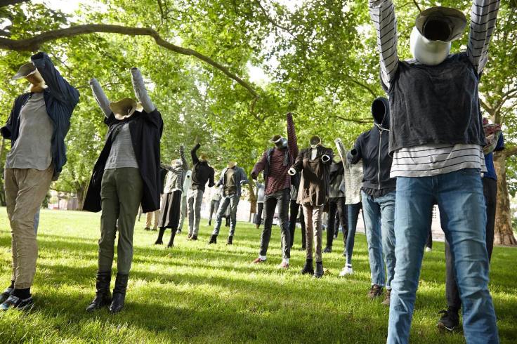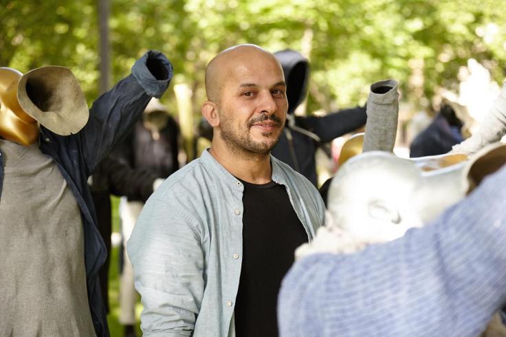 Ben quarantanove figure, corpi senza teste, vestiti con abiti che richiamano quelli dei manifestanti pacifici siriani, che sono scesi nelle strade e nelle piazze nel 2011, a simboleggiare che ancora oggi i siriani continuano ad assistere a crimini di guerra.