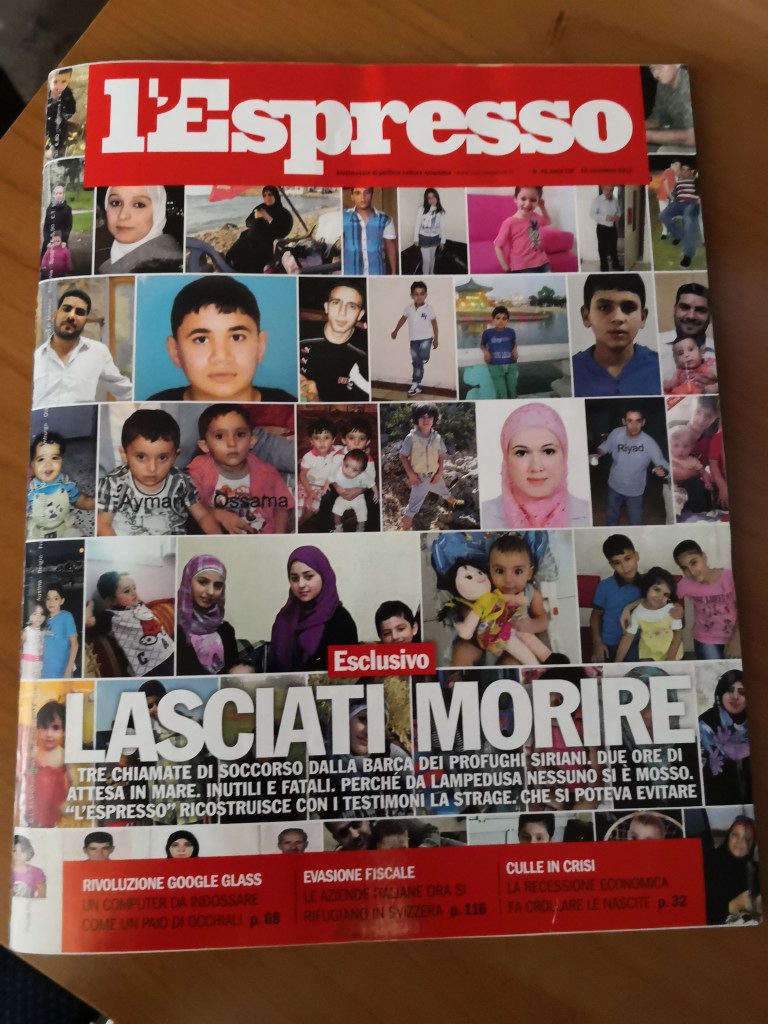 Tra la strage del 3 ottobre e l’avvio dell’operazione ci fu, però, un’altra tragedia in mare. L’11 ottobre 2013 un altro barcone carico di donne e uomini, migranti e profughi si rovesciò al largo di Lampedusa. A bordo c’erano oltre 30 bambini e la maggior parte delle persone erano siriani in fuga dalla guerra. L’Espresso dedicò l’ennesima struggente copertina a quella strage. Il mai più pronunciato, implorato quel 3 ottobre cadde nel vuoto come una foglia morta in autunno. Quella tragedia e le testimonianze di alcuni sopravvissuti hanno ispirato “Il silenzio del mare” (Castelvecchi editore) il mio romanzo dedicato alla Siria, i cui protagonisti, Fadi e Ryma, sono proprio due fratelli in fuga da Aleppo.