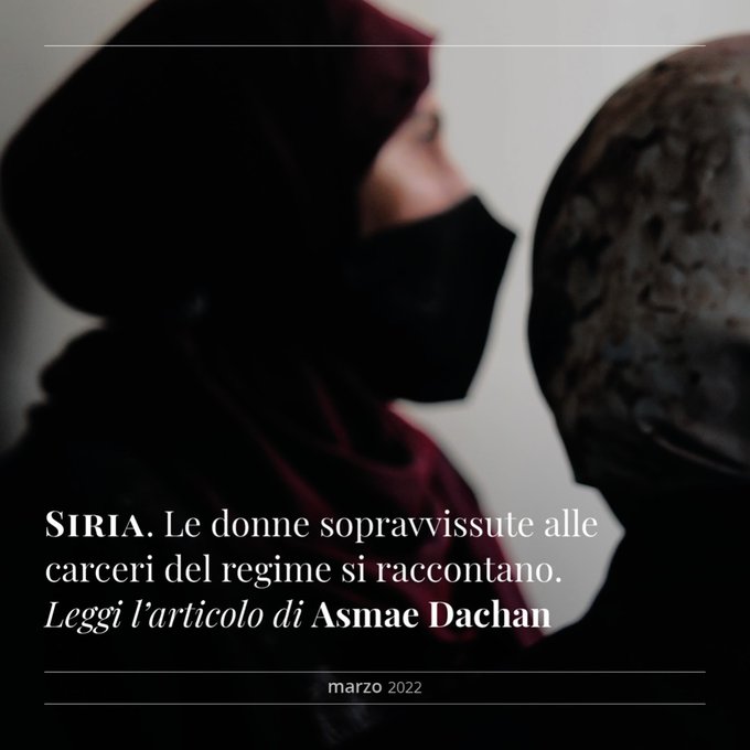 “Non è possibile descrivere la sensazione che si prova nel vedere le stanze dove qualcuno è stato torturato prima di te, il sangue sui muri, lo sporco, l’aria irrespirabile. Mi chiedo cosa spinga un uomo a trasformarsi in una belva e infierire su un altro essere umano. Ci sono scene che non posso dimenticare (…) Ho saputo cosa era successo a Rehab Allawi solo dopo che sono uscita. Nell’ultimo mese l’avevano interrogata e torturata più volte, poi non l’abbiamo più vista. Quando ho riconosciuto la foto del suo corpo esanime ho desiderato di essere morta con lei”. Sono le parole di Nur, studentessa universitaria arrestata mentre andava a dare un esame…