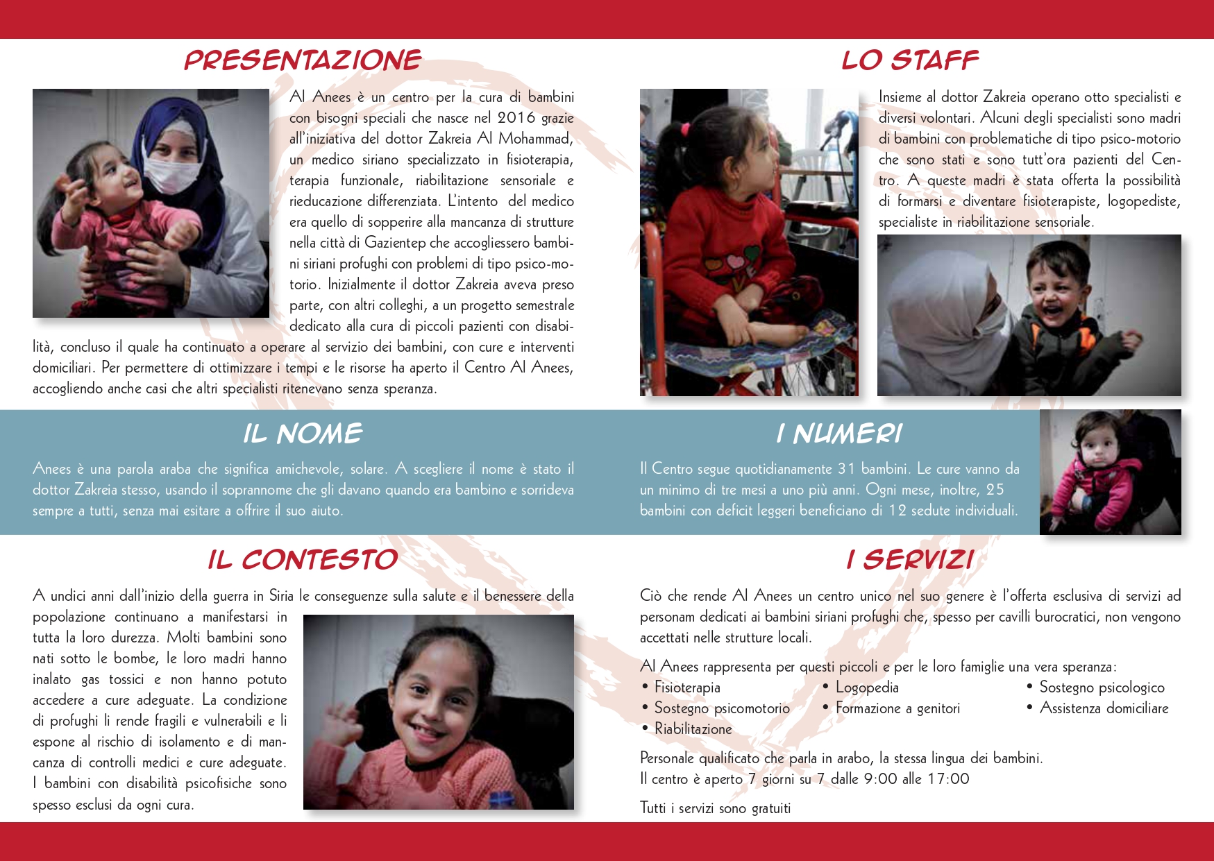 Lo scorso dicembre a Gazientep, in Turchia, ho conosciuto il dottor Zakreia al Mohammad, un medico siriano profugo che ha aperto un centro per l’accoglienza e la cura di bambini con disabilità fisiche e psichiche che nessun altro istituto accoglie chiamato al Anees. Ne ho scritto qui: https://www.avvenire.it/mondo/pagine/medico-siriano-a-aiuta-i-bambini-disabili-senza-assistenza-siria