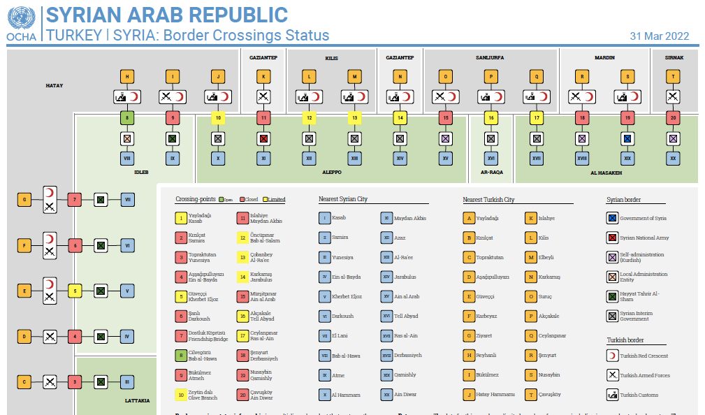 La #Turchia ha accettato di aprire tre valichi di frontiera con la #Siria : Bab al Hawa, Bab as Salama, Bab ar Rai. Ma solo tramite il 1o è possibile inviare aiuti internazionali al NW siriano (foto: ultimo aggiornamento #ONU sullo status dei valichi frontalieri).