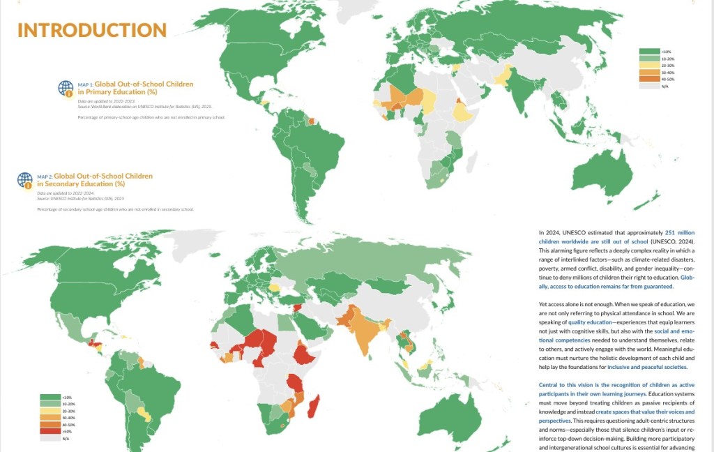 A livello globale, 251 milioni di bambini sono ancora fuori dalla scuola (UNESCO, 2024). Una parte significativa di questi vive in Paesi colpiti da crisi prolungate, e la Siria è tra i più colpiti.